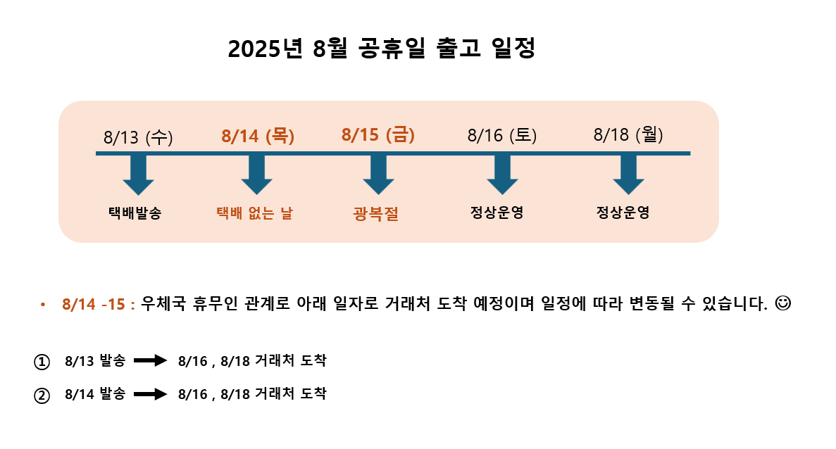 1. 2025년 8월 공휴일 배송안내 입니다.
