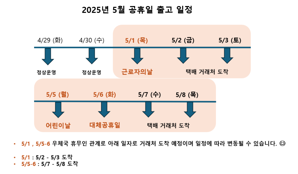 1. 2025년 5월 공휴일 배송안내 입니다.